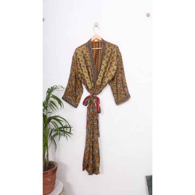Source Floral Print Silk Kimono Recycled Silk Saree Poncho Intimate Wear Vintage Women S Silk Sexy Kimono Swim Wear Dressing Gown On M Alibaba Com